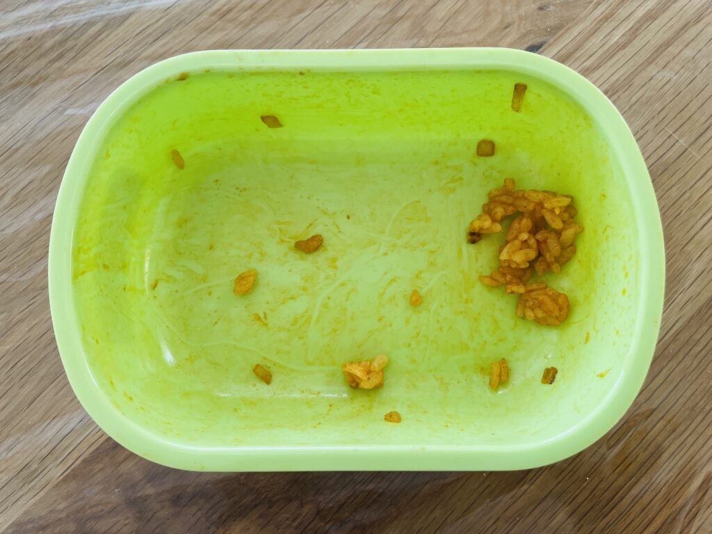 だいたいいつもこんな感じで、ご飯とおかずを2~3品詰めます。