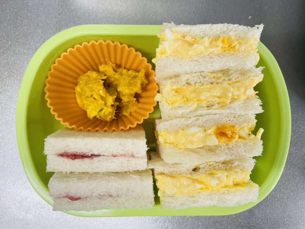 この日は校外学習(Field trip)だったので、特別にホイップクリームといちごのサンドイッチを作りました。
