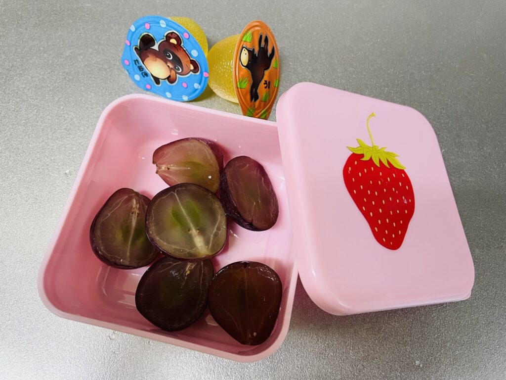 フルーツが多いですが、小さいゼリーを入れることもあります。